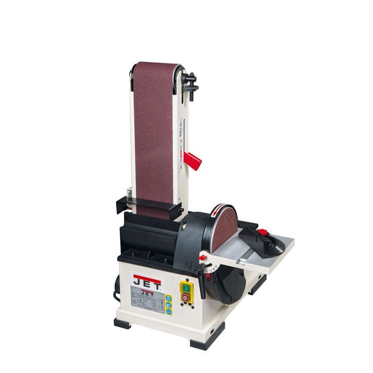 Jet JSG-64 тарельчато-ленточный шлифовальный станок для использования в столярной мастерской при любительской работе с деревом. Спектр решаемых задач очень широк: шлифовка торцов, кромок и плоских деревянных поверхностей, скругление граней, удаление старых покрытий, возможна и заточка инструмента.