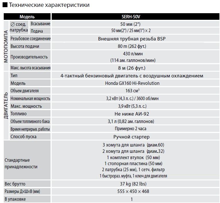 Высоконапорная, пожарная бензиновая мотопомпа. Тушение пожаров, перекачка воды на дальние растояние, полив. Мощность 4.3 лс, Производительность 25.8 куб м/час, напор 80 м, двигатель Honda GX160 Hi Revolution с датчиком масла в картере , D вх/вых 50/50-25-25 мм, размер частиц 6 мм, бак 3.1 л.