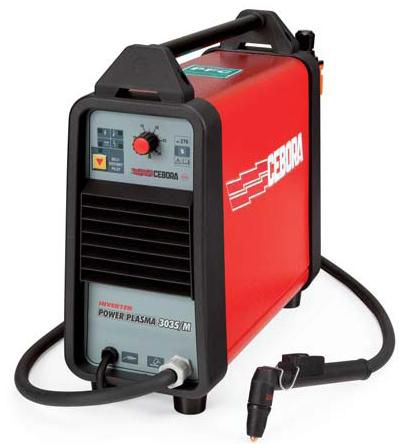 Инверторная установка плазменной резки POWER_PLASMA_3035M производства компании Cebora (Италия) весит всего 13 кг, включая горелку и требует однофазного питания; работает на сжатом воздухе или азоте (для высококачественной резки), которые подаются с давлением 3.5 бар, расход воздуха всего 60 л/мин (поэтому может питаться от 25 л компрессора).