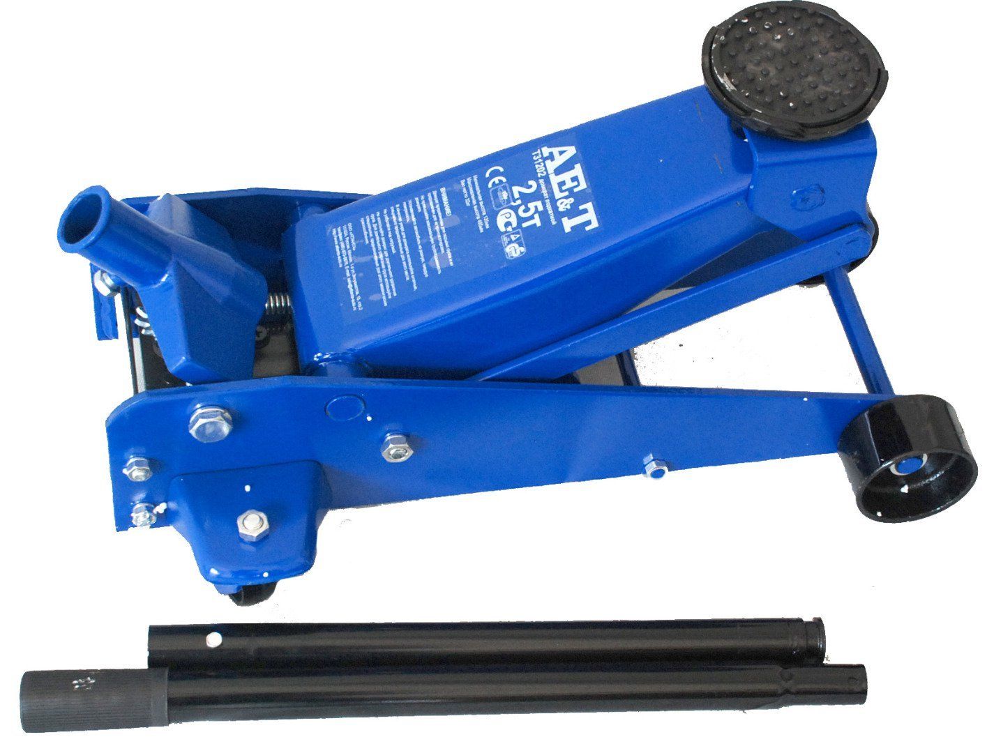 Домкрат подкатной AE&T предназначен для поднятия необходимой стороны автомобиля с целью его последующего ремонта. Максимальная масса поднимаемого груза 2,5 тонны. Удобство работы обеспечивают транспортировочные колеса, позволяющие расположить домкрат в необходимой для поднятия точки автомобиля. Поднятие происходит посредстрвом усилия оператора на рычаг гидравлического плунжерного насоса. Поворотная чашка для максимального комфорта в работе. Имеет устойчивую конструкцию. Масса 32 кг.