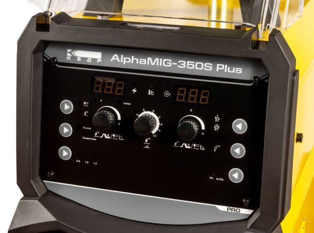 КЕДР AlphaMIG-350S Plus – это промышленный полуавтомат для производительной и высококачественной сварки, работающий в паре с компактным и мощным 4-роликовым подающим устройством.