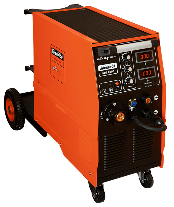 Промышленный инвертор серии STANDART MIG 2500 (J67) используется для механизированной сварки в среде защитного газа (MIG/MAG) и сварки порошковой проволокой (FCAW), а также имеют возможность ручной дуговой сварки покрытыми электродами (ММА). Для удобства использования аппарат оснащен тележкой с поворотными колесами, на которую также устанавливается баллон с газом.