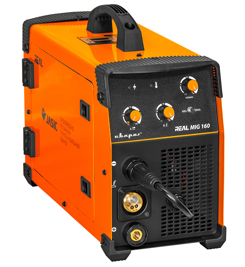 Аппарат серии REAL MIG 160 (N24001) предназначен для полуавтоматической сварки в среде защитных газов (MIG/MAG), сварки порошковой проволокой (FCAW), а также ручной дуговой сварки покрытым электродом (ММА).