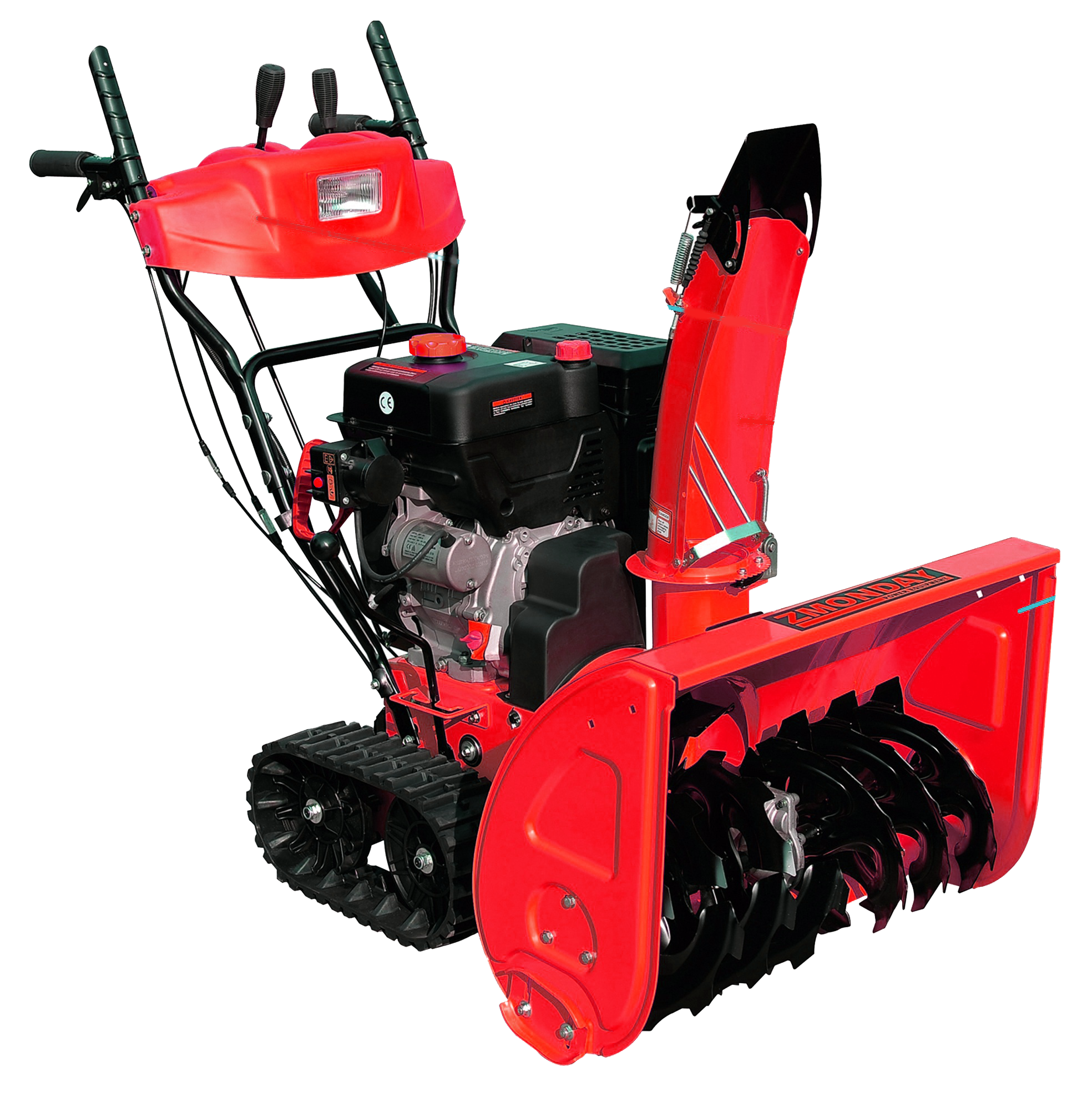 Мощный снегоуборщик Forza AC-F-9.0ET с повышенной проходимостью оснащен электростартером и фарой. Ходовая база данной модели - гусеничный трак. При помощи трансмиссии, которая передает вращение от двигателя к гусеничному траку, обеспечивается самостоятельность передвижения. Уборка снега осуществляется за счет двухступенчатой системы: первой ступенью является зубчатый шнек, режущий снег, а второй - специальная крыльчатка (вентилятор с высокими оборотами, который и выбрасывает снег).
