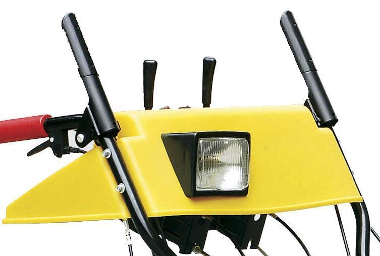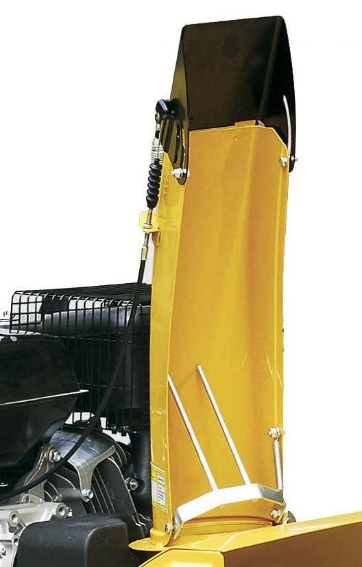 Снегоуборщик Целина СМ-7011Э оборудован прочным металлическим желобом для выброса снега, поворачиваемый на 190 градусов и угол наклона 70 градусов. Взаимная блокировка рукояток управления позволяет изменять направление и дальность выброса снега во время движения.