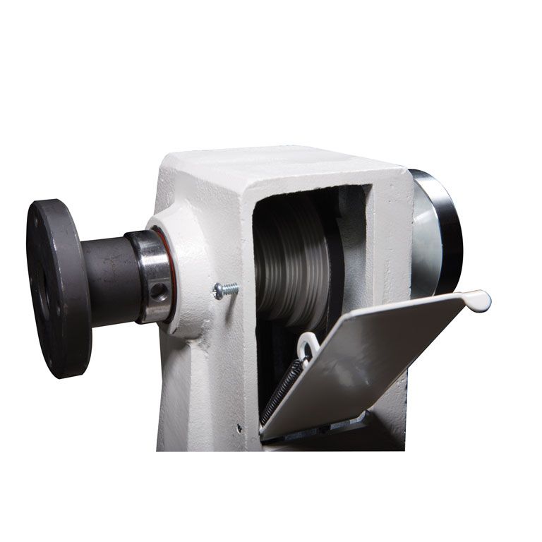 Предусмотрено шесть скоростей вращения шпинделя, их меняют перестановкой поликлинового ремня – операция простая и не требует вспомогательного инструмента. Также проста установка планшайбы или патрона – шпиндель блокируют при помощи делительного приспособления. Для регулировки задней бабки или подручника ослабляют эксцентриковые фиксаторы. Станок укомплектован удобными выдвижными ручками для переноски и лампой подсветки рабочей области.